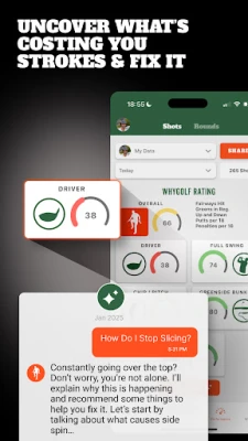 • Get performance insights and your WhyGolf Rating—a detailed breakdown of what areas need improvement