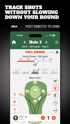 • Track every shot’s contact, direction, and result throughout your round with our intuitive golf shot tracker