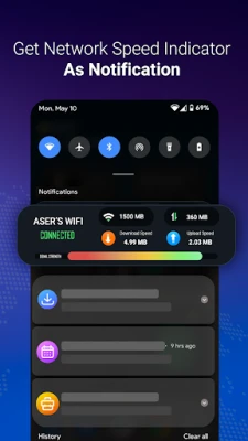 You can directly turn on/off Wi-Fi from the app. Also get the nearby Wi-Fi network details. Check your connected Wi-Fi speed and performance. Save the Wi-Fi speed test history.