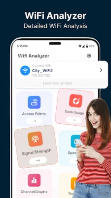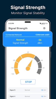 Scan nearby WiFi networks, check signal strength, and optimize your internet connection with this powerful WiFi analyzer & scanner. It helps you test wireless signal quality, monitor network performance, and ensure network security all in one simple tool. Stay connected with the WiFi signal anytime, anywhere.