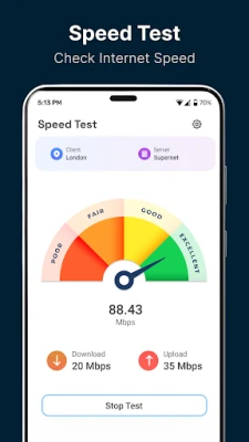 WiFi analyzer lets you check your internet speed instantly with the built-in speed test tool. View download and upload speed to evaluate performance. Identify a list of networks, compare speeds, and enjoy a smooth, and stable browsing experience anywhere.