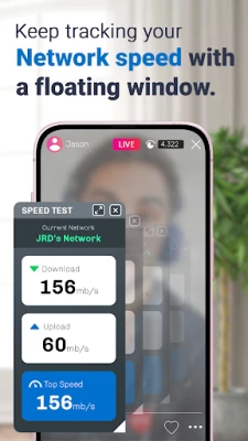 Keep an eye on your network speed without leaving your screen. The always-on floating window lets you track performance while gaming, browsing or streaming.