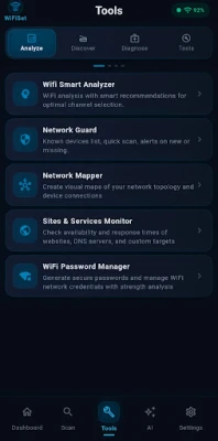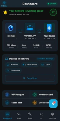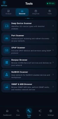 The most powerful device discovery and network analysis platform with 25+ professional tools. WiFiSet transforms your smartphone into a complete network workstation, featuring an intelligent scanning engine that identifies 42+ device types with confidence-based classification.