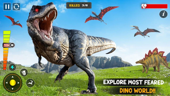 The best dinosaur hunter is a hunting simulation game. You land on a distant planet inhabited by dinosaurs, and you need to kill dinosaurs with your favorite assault guns. In killing dinosaur games, you are a wildlife observer to a stealthy T. rex hunter. Dino hunting games have dinosaurs in full 3D complete with their terrifying roars environment.