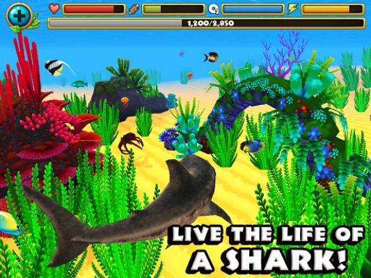 Explore the depths of the ocean and live life as a Great White Shark! Survive in a massive underwater world filled with dangerous predators and tasty fish. Terrorize the beaches, raise a family, hunt your prey through tropical coral reefs, and battle for your life against fierce carnivores like orca whales, dolphins, and octopuses!