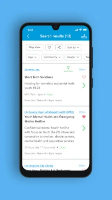 ✔ View human services near you – they are listed first if your location is on.