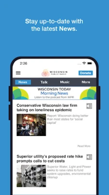 The Wisconsin Public Radio App is brought to you by the people at WPR and Public Media Apps. We work to provide our valued listeners with great solutions to find what you want, when you want it, and where you want it.
