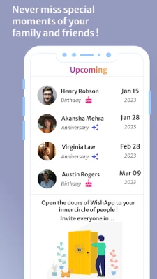 WishApp allows you to never miss the special occasions, such birthdays and anniversaries, of your family and friends.