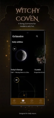 This witchcraft app offers daily lunar guidance, shadow work practices, tarot meanings, and ritual tools — designed to be returned to daily, not scrolled once and forgotten.