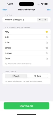 Choose between a "Full Game" (number of rounds based on player count) or a fixed 10-round game.
