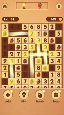 Experience hundreds of unique levels with a guided Number Match adventure! In Targets Mode, you’ll merge numbers with specific, colorful fruits to complete objectives. This adds a delightful layer of strategy to your Match Ten challenge.