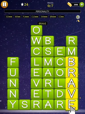 You find words and pop them with one swipe. Words are placed either vertically or horizontally. Finding words is easy when you use the hint and starting letters. When you pop all the letters you win the game. The game gets easier as you find more and more words.