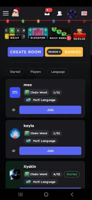 • Chain Word – Type a word that starts with the last letter of the previous one.