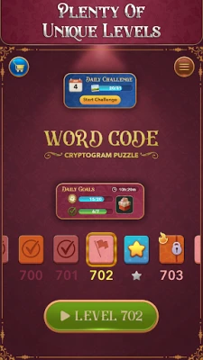 - Daily Challenges: A fresh puzzle daily! Numbers still encode phrases, but hints come as descriptive clues for some words in the quote.