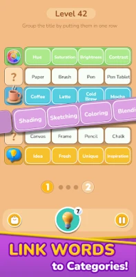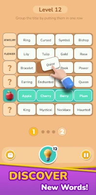 Each level gives you a set of seemingly random words. Your task: group them by meaning, category, or association. Think carefully — connected words may be scattered. Solve the puzzle by making the right associations and test your logic skills.