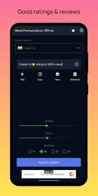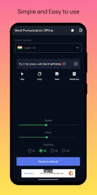 Features:- - Available in three accents - IN, US, UK - Able to adjust Speech rate and Pitch of the Voice