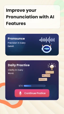 Word pronunciation and spell checker app give speak and translate feature. In voice to text feature just click on mic button and your voice will be converted into audio to text. Speak to translate supports 100+ languages. you can translate your text into any language you need. This speak & translate language (STT) will support different features like copy, share, save and delete your translated text.