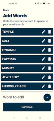 Personal Touch: Input your unique word list. Effortlessly edit or remove entries to perfect your puzzle.