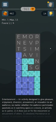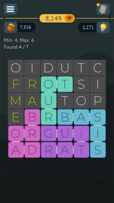 At the beginning of the game, you'll see a small playing field where you need to find simple three-letter words. You can place the words in any direction except diagonally by swiping your finger across the squares on the board. You'll quickly get the hang of it! As you progress, the game becomes increasingly difficult, and subsequent levels are no longer so easy. The objective of each level is to locate all the words that have been hidden on the field. If you happen to find a word on the board that was not included in the puzzle, you earn game coins! You can exchange these coins for hints to assist you in tough situations.