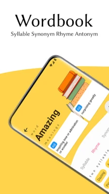Wordbook is a perfect app for anyone who likes literature or into poetry, amazing features of wordbook; advanced syllable counter, syllable splitter, rhyming words, helps one craft perfect lyrics and sentences.