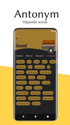 Wordbook is a handy all-in-one dictionary app; syllable counter & dictionary which also provides synonyms, antonyms and rhyming words all at once.