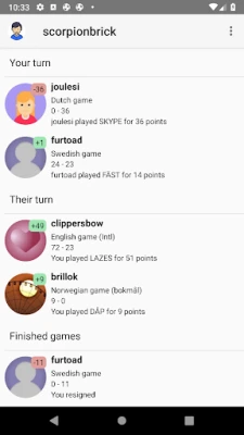 Log in once using your Wordfeud username or email address. This app supports log in for multiple users! If you don't know your Wordfeud password you can set a new one in the Wordfeud app under 'Settings'.