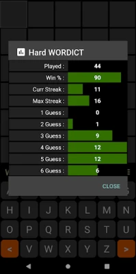 Wordict is a wordle game where you need to guess a 5-letter English word in 6 tries or less. When you enter your guess any exactly matching letter will be indicated in green. If the letter is present but not in the same position, it will be highlighted in mustard color.