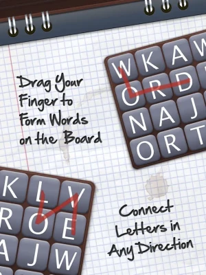 Form valid words by tracing letters on the board with your finger. Words can only be formed by connecting neighbouring letters, and the minimum word length is 3 letters. When you think you have found a word, release your finger from the board, and if valid, you score a point in the game.