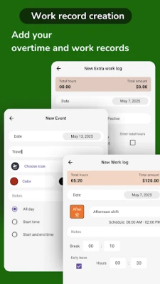 • Payroll Calculator & Hours calculator: Calculate your salary easily with overtime. Log every detail in your work log, time sheet tracker, or income tracker.
