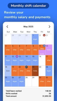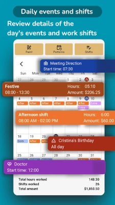 Download Work Shift Calendar & Paycheck now to transform how you plan shifts, monitor time and workday payroll and get paid no spreadsheets required! Perfect for anyone who works by the hour and wants to maximize earnings and simplify payroll.