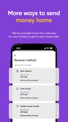 Depending on where you're sending to - the app offers you a choice of ways to transfer money; cash pickup, mobile money, bank transfer and airtime top up.