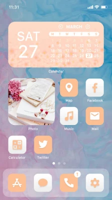 - Supports three widgets: calendar, photo, clock and more designed in deep peach theme style