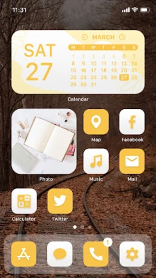 - Supports three widgets: calendar, photo, clock and more designed in golden white theme style