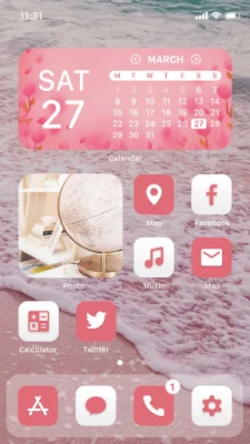 - Supports three widgets: calendar, photo, clock and more designed in soft red theme style