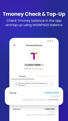 - You can check the Tmoney balance of your WOWPASS card.