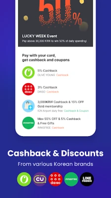 - Receive up to 20% cashback on payments made to Korean brands in real-time.
