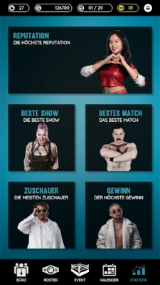 Build a powerful Promotion, create exciting Events and lead your Wrestlers into epic Matches.