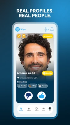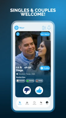 If you’re tired of dating apps and just want to meet people for friendship, Wyzr gives you a better way to build genuine, platonic connections. Whether you’re in your 40s, 50s, or 60s rebuilding your social circle, or in your 20s or 30s looking to meet friends to get out and do things with, Wyzr helps you find your people. Join solo or with your partner — singles and couples welcome.