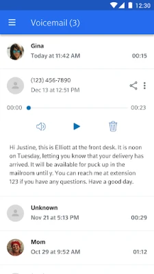 The Xfinity Mobile Voicemail app allows customers with a compatible device to listen and manage your voice messages. You can play, share, delete, reply to and if available, view transcriptions of your voice messages. In addition, you can also manage and record greetings.