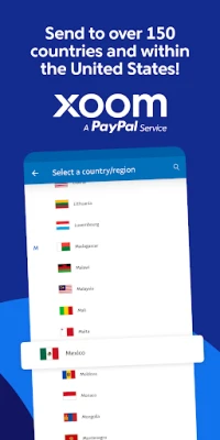 Easy access to your PayPal wallet, so you can use your PayPal payment methods on Xoom