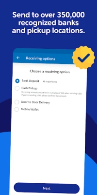 Multiple ways to send, including bank deposits, cash pickup, and mobile wallet transfers