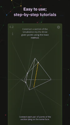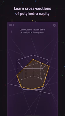 XSection is a trainer of solid geometry problem solving. It teaches you how to perceive 2D representation of polyhedra, lines, and planes from 3D Euclidean space. All the problems can be solved without complex calculations. The app contains the required theory facts and explanations. If you forgot a definition, you can instantly find it in the app’s glossary.