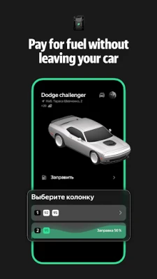How to use: Gas stations where you can pay for fuel in the application are indicated by green dots. When you arrive at such a gas station, select the column number in the card. Then select the type of fuel, how much you want to refuel and the payment method. Click "Pay" - the fuel will flow, and when the refueling runs out, you can leave. If something goes wrong, a message appears on the screen about what needs to be done.