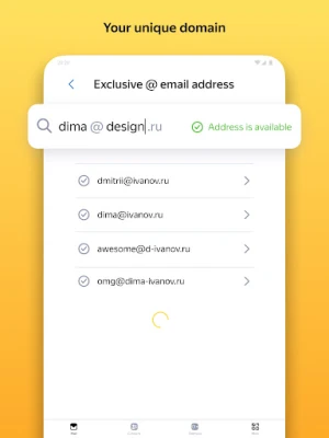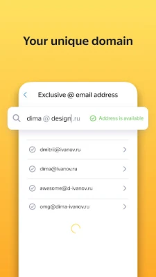 - An exclusive address. Connect Yandex 360 Premium to choose a unique address with your name or what you do. An exclusive address lets people know the line of work you're in. For example: [email protected]. Your email will stand out and get extra attention.