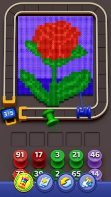 ► Color-Based Collection Mechanic: Each bobbin clears only the stitches of its own color.