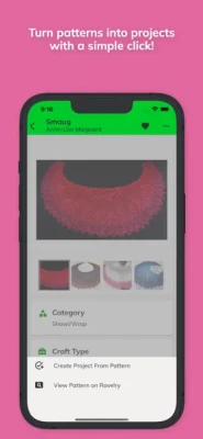 **Project Planning:** Plan your knitting and crocheting projects with ease. Add patterns to your project queue, track your progress, and check off completed items.