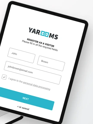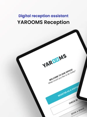 YAROOMS reception is your digital reception assistant that helps employees and visitors check-in and book a desk or a room.