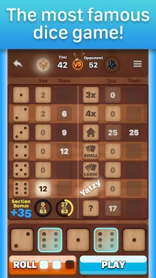 🎲 Play versus Opponent - with AI opponents you will definitely challenge your mastery of the yatzy gameplay