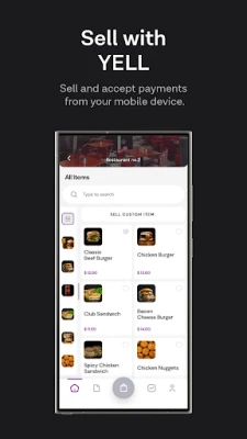 YELL Point of Sale is a free mobile POS app that is always with you — a phone or tablet is all you need to sell with YELL. How it works: Log into the app, select items available in your store, add them to the cart. For checkout, scan the QR code on your customer’s YELL app or send the customer a push notification. As soon as they approve the transaction, the money is in your account.