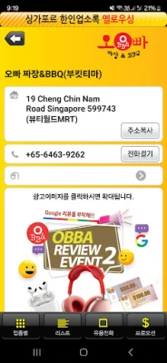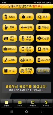 싱가포르 한인업소록인 "옐로우싱"은 한인들이 언제 어디서나 쉽게 한국식당, 기업, 주요 전화번호 및 주소를 찾을 수 있도록 돕는 서비스입니다. 이 앱을 통해 사용자는 싱가포르 내 한국식당, 미용실, 한인기업의 주소와 상세 설명을 빠르고 쉽게 확인할 수 있습니다. 또한 다양한 할인 정보와 프로모션 소식을 접할 수 있어 싱가포르 생활에 유용합니다. 필요 시 바로 전화 연결이 가능하여 더욱 편리합니다. 그리고, 생활에 필요한 필수 유용 전화번호를 안내받을 수 있어, 한인들의 일상 생활을 더 편리하게 만들어 줍니다.